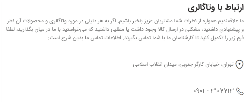 در حال حاضر ما گالری فعال نداریم و بازدید از کارها و خرید حضوری امکانپذیر نیست. اما امکان تحویل حضوری در کارگاه رو برای عزیزانی که ساکن تهران هستند، در نظر گرفتیم. کارگاه ما در مرکز تهران و در محدوده میدان انقلاب واقع شده تا در هر جای تهران که هستید، به سادگی امکان دسترسی به ما رو داشته باشید.