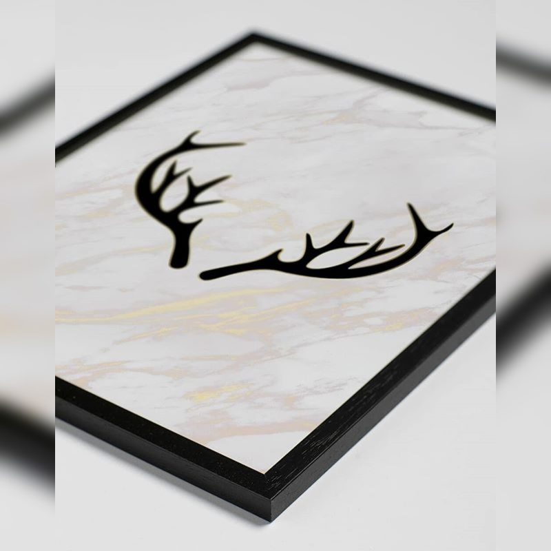 تابلو دیواری دو تکه گوزن مشکی طلایی