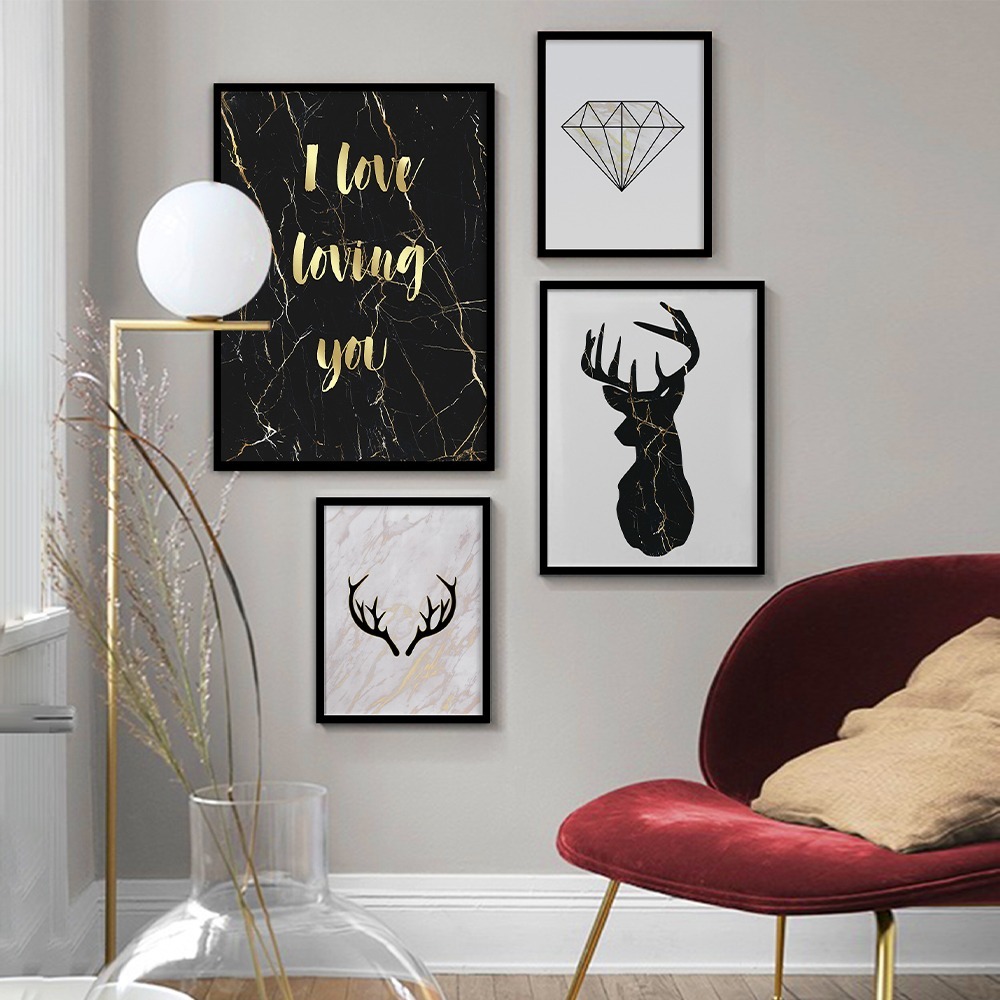 تابلو دیواری چند تکه گوزن مشکی طلایی
